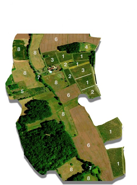 Das beste aus konventionellem und biologischen Anbau wird hier auf das Terroir, das vorherrschende Klima und die alten und jungen Rebstöcke, sowie die Obstbäume angepasst, wodurch das Bodenleben geschützt und die Artenvielfalt gefördert werden.